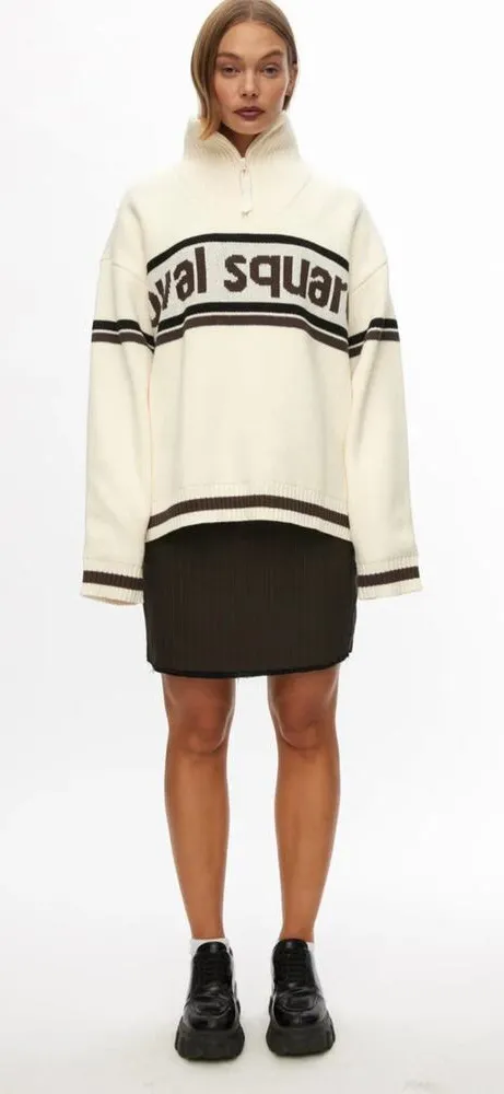 Oval Square Snow Knit Anorak Turtleneck 1/4 Zip heavy chunky Cotton Sweater S White - $40 - From Miriam
