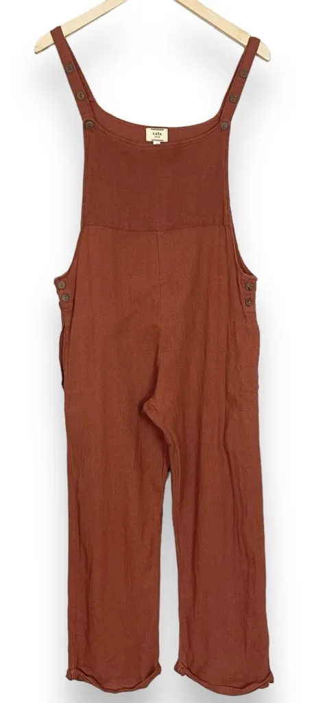 Kaya Wear slouchy brown overalls with adjustable straps (three button options) and two side pockets.... Show more