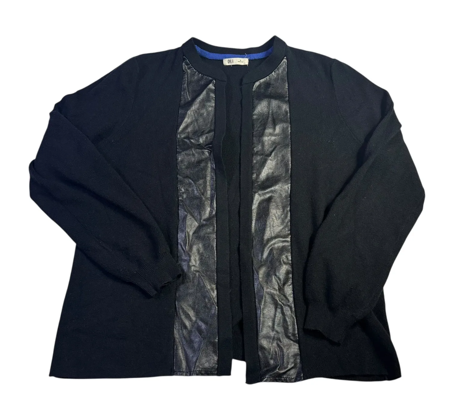 OVLA women's long sleeve cardigan sweater in black. This stylish piece features contrasting faux lea... Show more