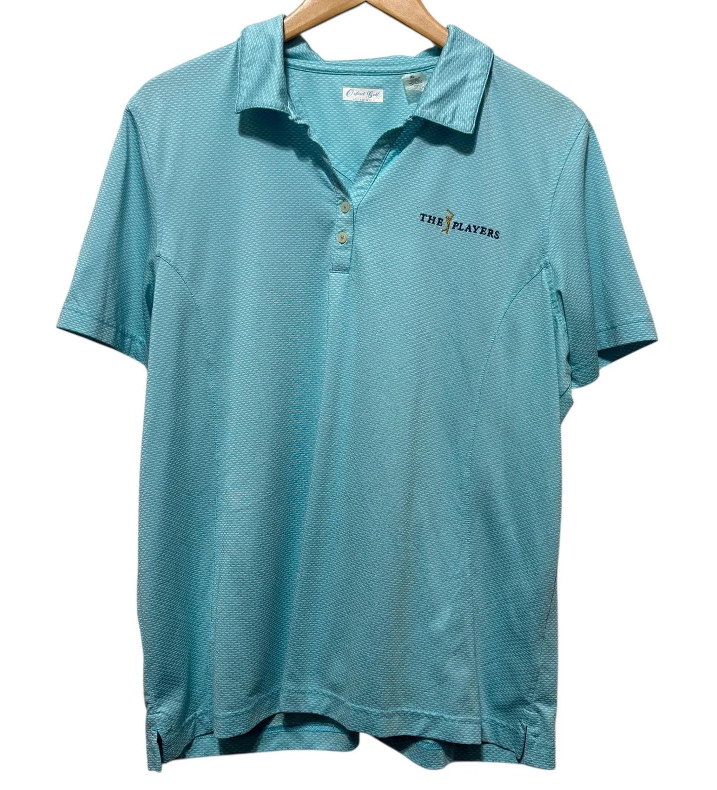 Great Pre-Owned Condition - See Pictures for Details Features: • lightweight performance polyester spandex blend • aqua blue with subtle textured jacquard weave • embroidered "The Players" logo at chest • collared neckline with 3-button placket • short sleeves and vented hem for movement • moisture-wicking and quick-dry Super Dry fabric • great for golf, resort wear, or casual weekends Style Profile: golf polo, activewear top, performance shirt, resort wear, country club style, quiet luxury, preppy casual, leisure chic, coastal weekend Approximate Measurements: flat lay: armpit to armpit: 23" length: 27" Pet/smoke free home 1-2 day shipping Bundle & Save