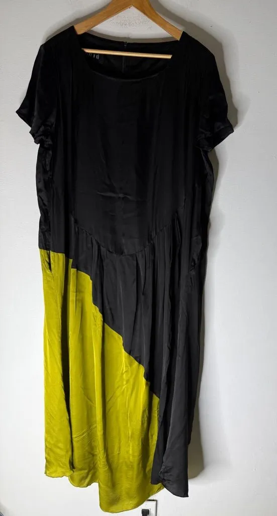 ozai n ku Satin Black Green‎ Color Block Short Sleeve Maxi Dress 2XL Size 2X - $43 - From Crystal