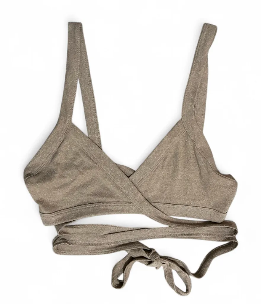 OZMA of California Sunset Wrap Bra Top – Medium OZMA of California raw silk noil wrap bra / crop top in a soft neutral taupe-beige tone. Features a flattering crossover wrap front with wide straps and long adjustable waist ties for a customizable fit. Made from OZMA’s signature silk noil jersey with a lightly textured, breathable feel and beautiful drape. Can be styled as a bra top, cropped wrap top, or layered piece under knits, blazers, or jackets. A timeless minimalist essential with balletcore, boho, and quiet luxury appeal. Size medium. Gently worn and well cared for. Style tags: OZMA of California, silk noil, wrap bra, wrap top, balletcore, minimalist, quiet luxury, boho chic, neutral aesthetic, slow fashion, capsule wardrobe, elevated basics, euro summer, elevated basics Last two photos show this same top in other colors.