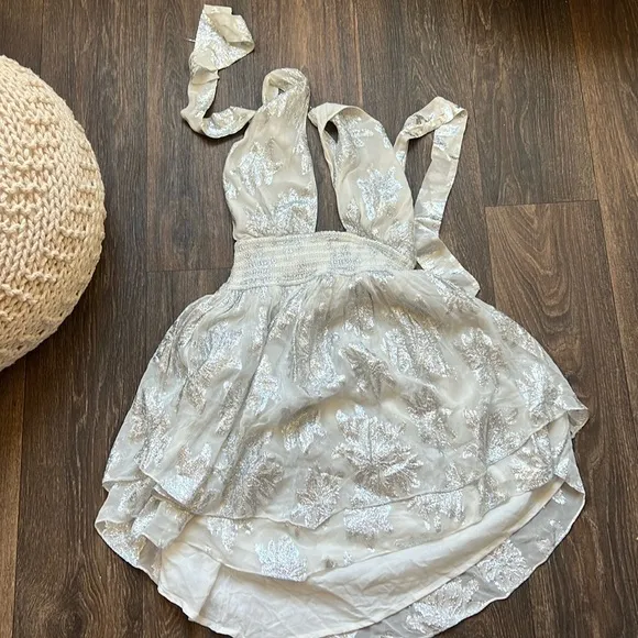 From the Elia Collection. Designed in a halter neck style, this metallic Rococo Sand minidress is fi... Show more