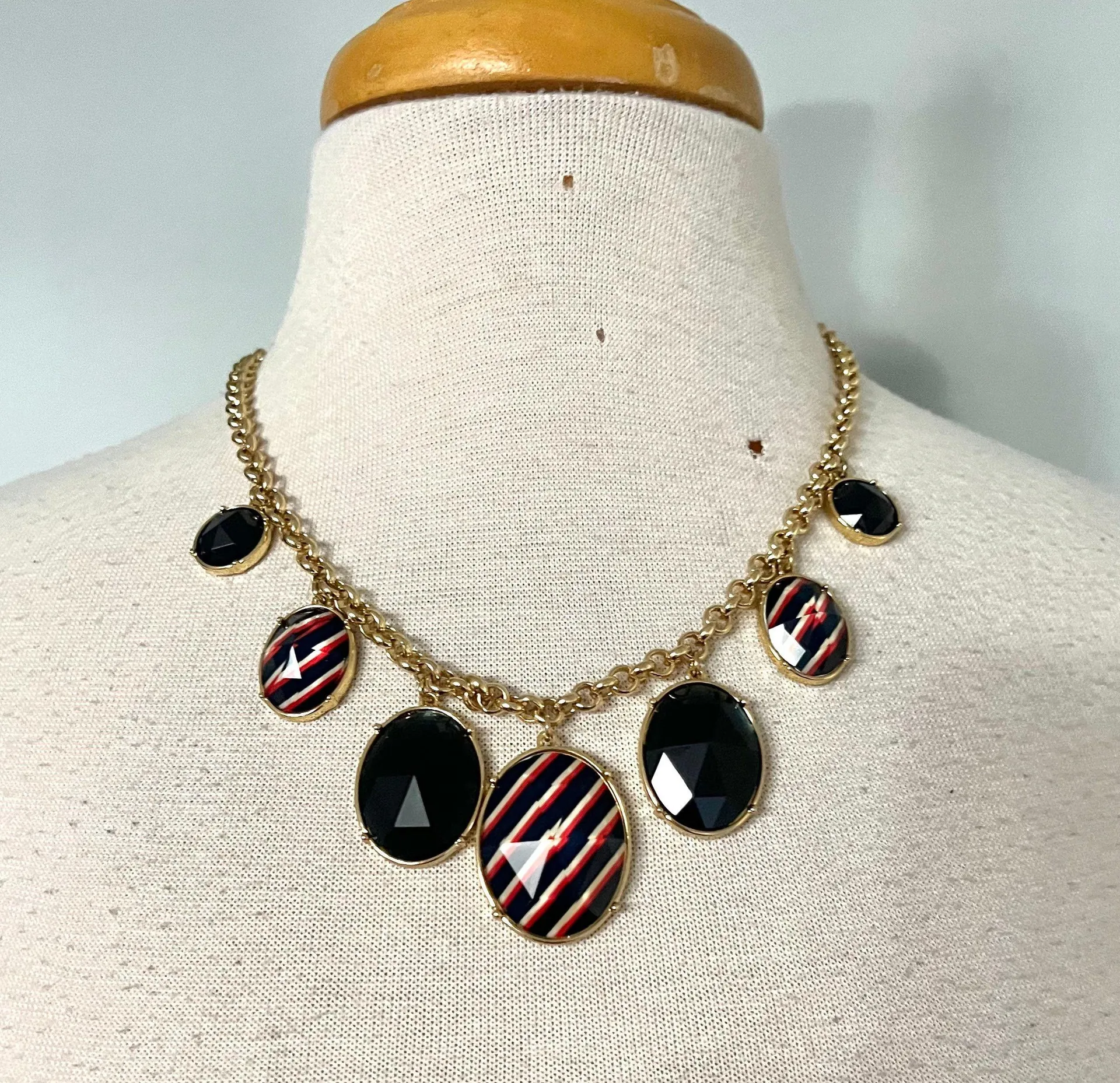 NWT Talbots Gold-Toned necklace Red, navy blue & white Navy blue charms + navy / red / white stripe... Show more