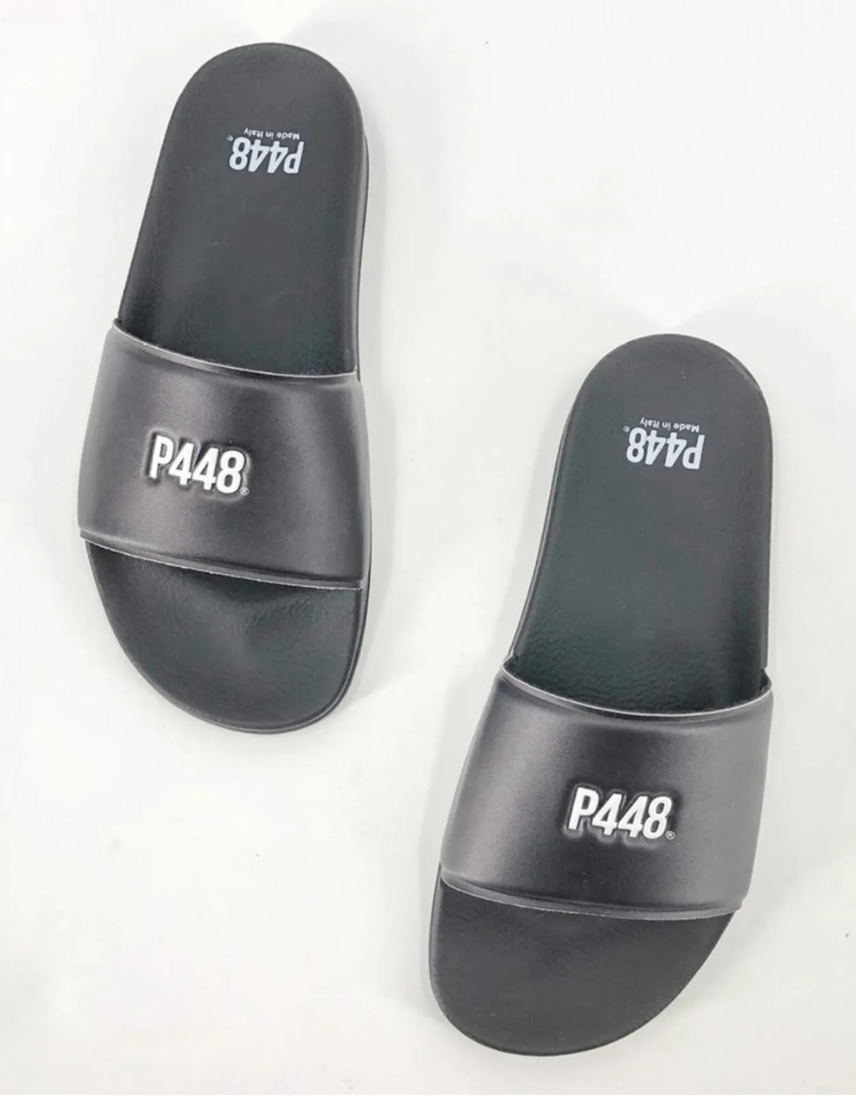 P448 Super Water Resistant Black Open Toe Slip On Pool Slide Sandals Slippers NEW US 7.5/8 Size: EU38 Color: Black Condition: New without box - Water-resistant - Comfort - Contoured footbed - Lightweight - Slip-on - Open toe - Rubber Tags; casual, summer, vacation, beach, lightweight, minimalist, modern, classic, water resistant, rubber, contemporary, logo, outdoor