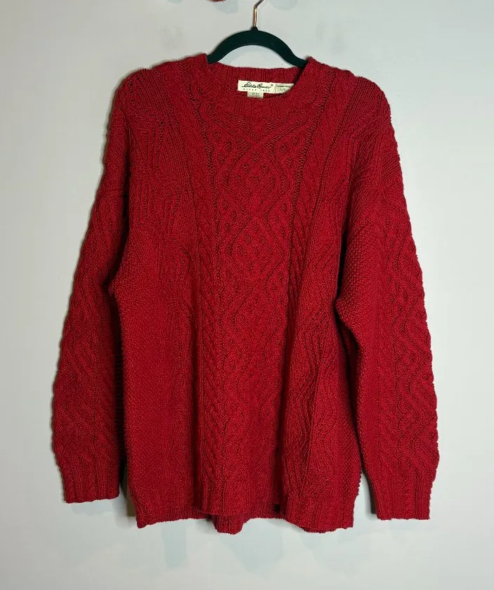 Vtg Eddie Bauer red cable knit fisherman sweater Size L - $54 - From Lindsey