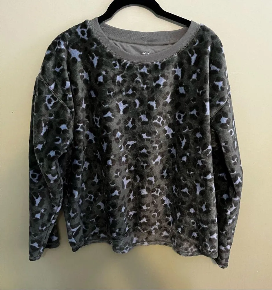 Crewneck sweater. Sherpa. Green cheetah pattern. 100% polyester. new with tags