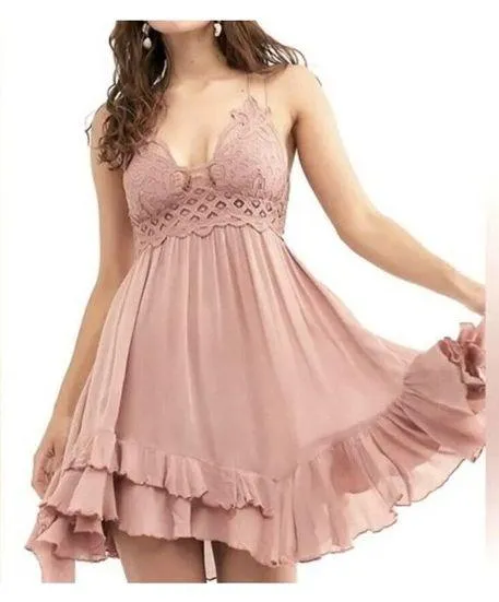 Free People One Intimately X-Small Adella Slip Mini Dress * Tiered Asymmetrical Hemline * Crochet... Show more