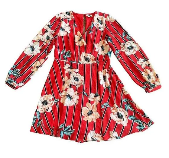 Express Size medium women's US Pretty floral long sleeve dress Deep v-neck with surplice neckline; B... Show more