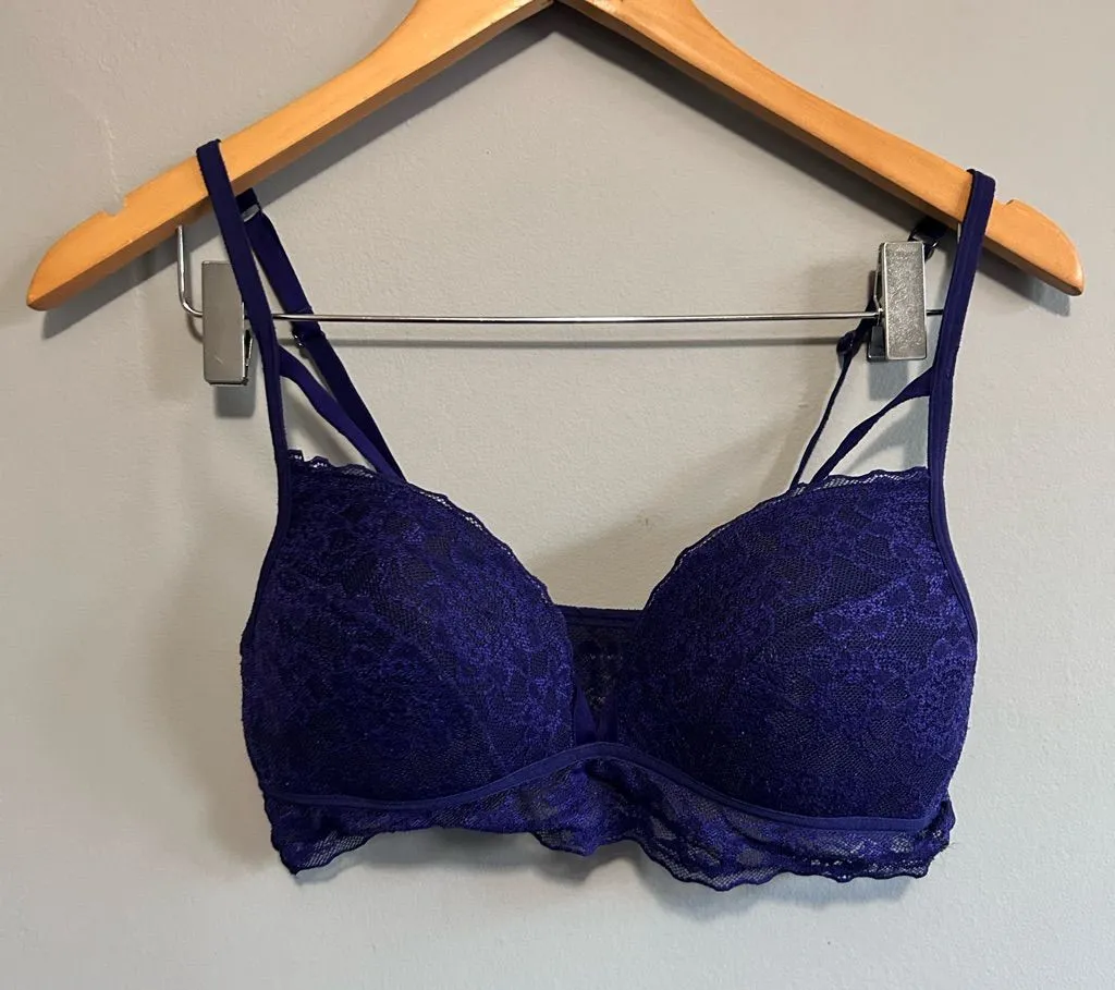 Experience comfort and elegance with this deep blue lace bralette. Perfect for everyday wear, it off... Show more