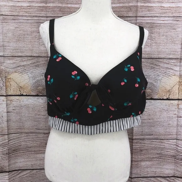 Cacique Swim Bikini Top Size 44DD Black and Pink Cherry Knot front detail Underwire Lightly padded... Show more