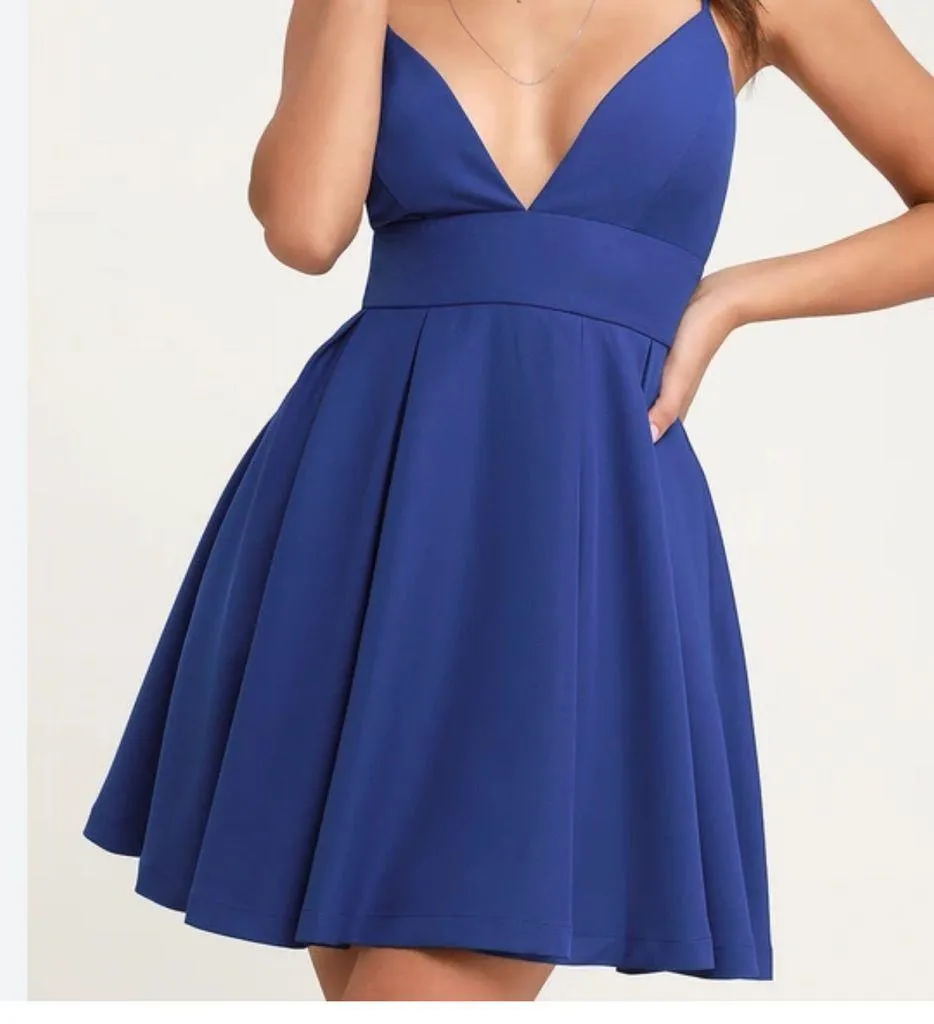 Brand new with tags Lulu’s here for the party royal blue skater dress Size medium Sold out online Length is approximately 2 1/2 inches roughly measures 14 inches fully lined adjustable straps