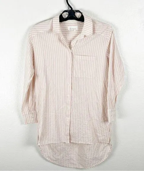 by ANTHROPOLOGIE Longline Striped Long Sleeves Button Down Chest Pocket Tunic Top, Size XS. Gently w... Show more