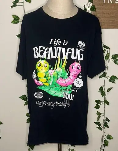 Great Condition!! A bit of a tighter fit! Life Is Beautiful Black T-Shirt from NoHours. Screen-prin... Show more