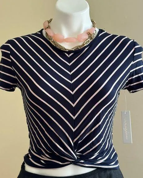 JO & CO Jeans Navy Blue & Pink Stripes NWT Crop Top Short Sleeves SZ SP - $13 New With Tags - From Midsie