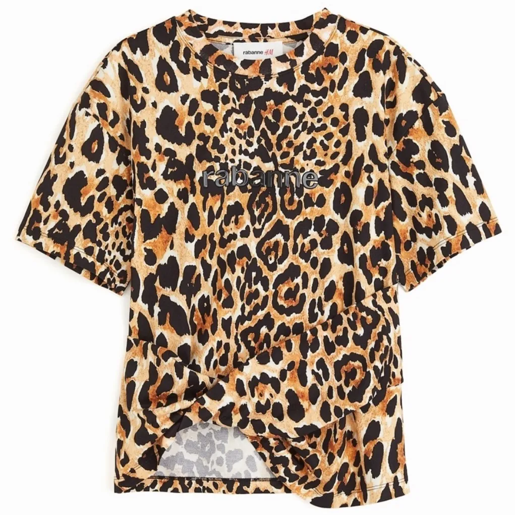 . Pullover, short sleeve, leopard animal print, raised logo on the chest. Excellent like new conditi... Show more