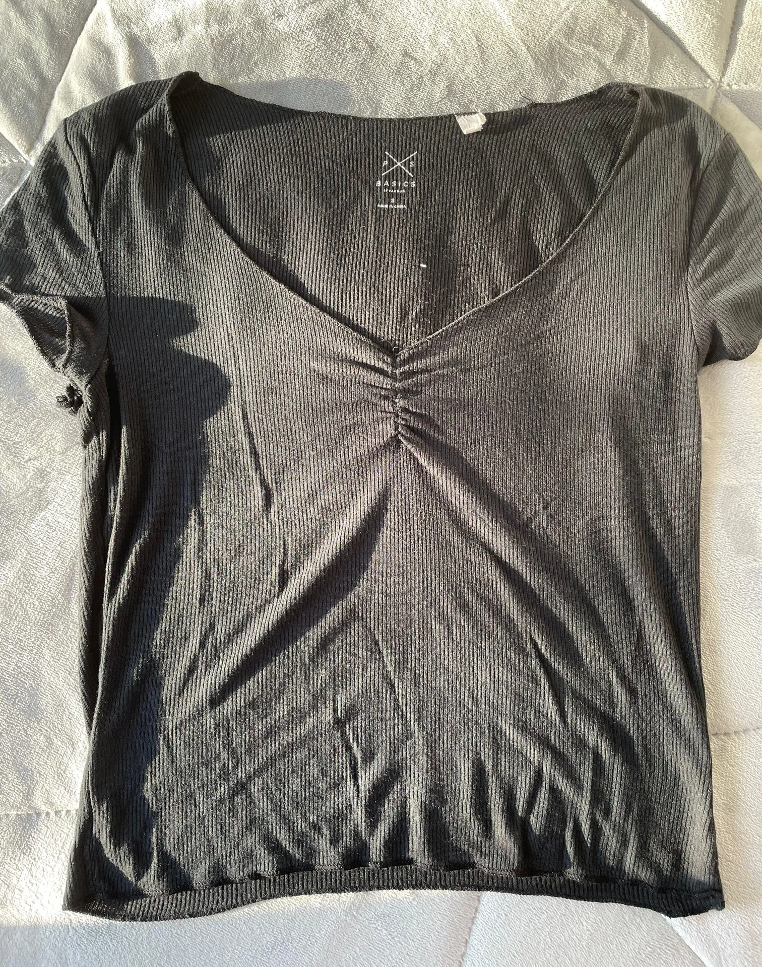 Black ribbed Gina style top from Pacsun-Basics. Very soft and stretchy material (demonstrated in the... Show more