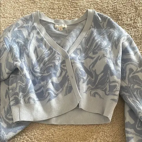 This PacSun cardigan sweater features a captivating blue tropical leaf pattern on a light base, offe... Show more