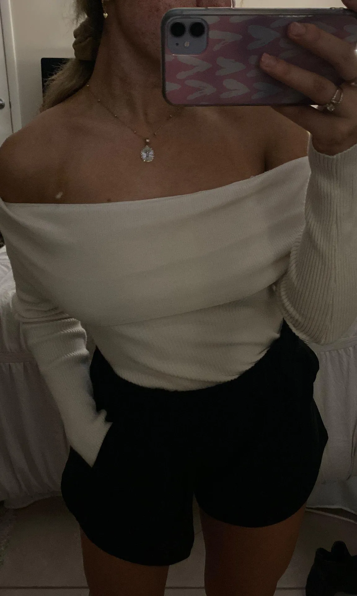 Cute ribbed off the shoulder top! Nice material, great for dinner with a cute pair of jeans or skirt