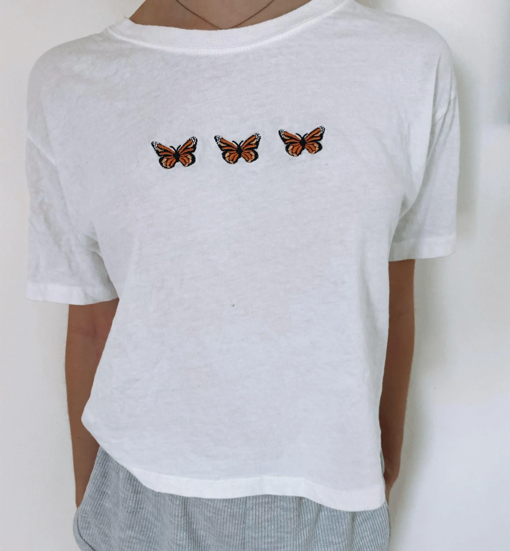cute cropped tee with butterfly stitching from pacsun super good condition hardly ever been worn sup... Show more