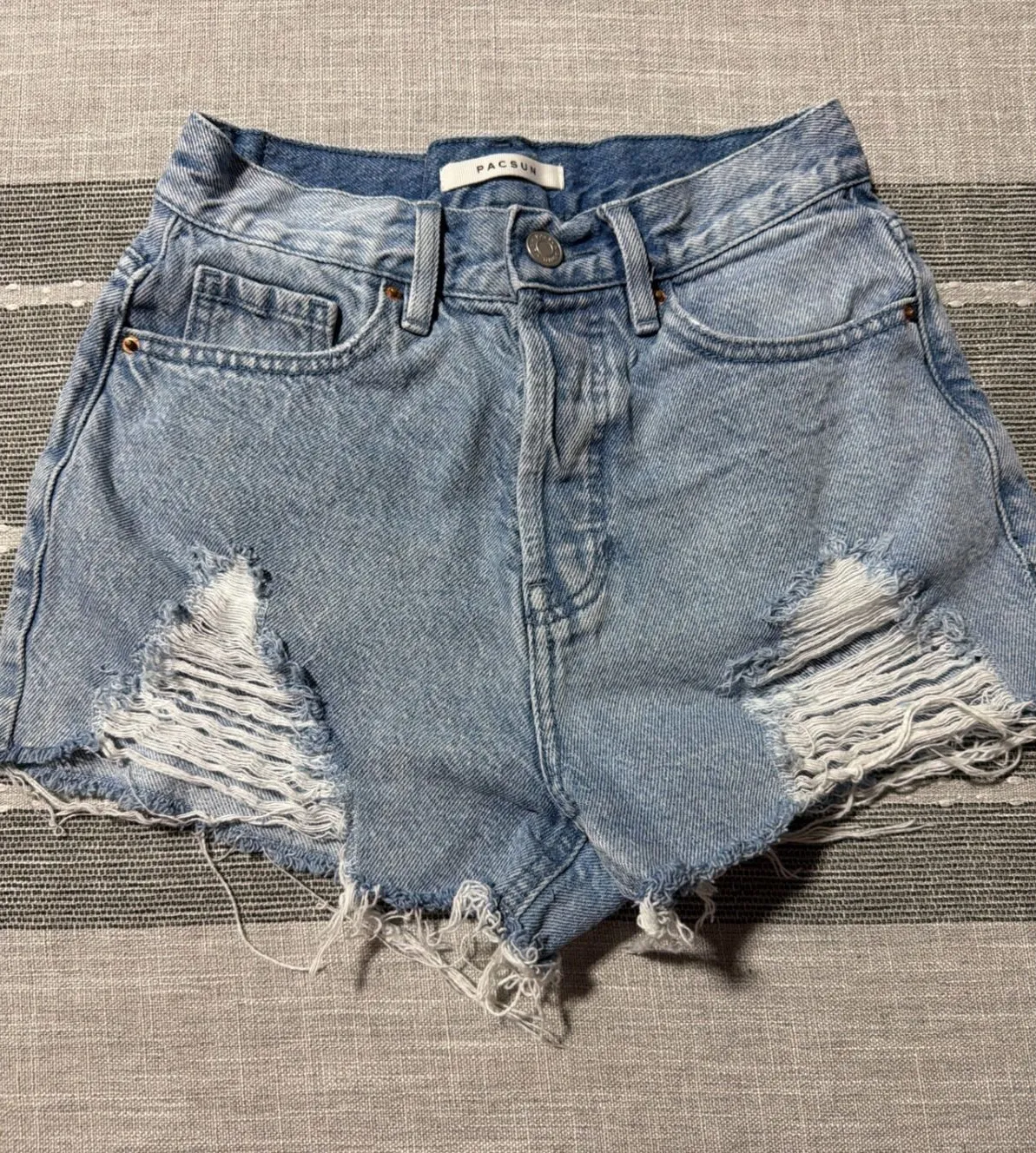 Bin cc Keywords: PacSun shorts, denim shorts, cutoff shorts, ripped denim, distressed shorts, high... Show more