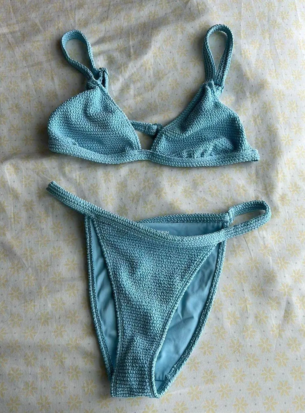 PacSun swimsuit in blue! Looks like a crochet suit but is so comfy in sizes XS! Good condition, onl... Show more