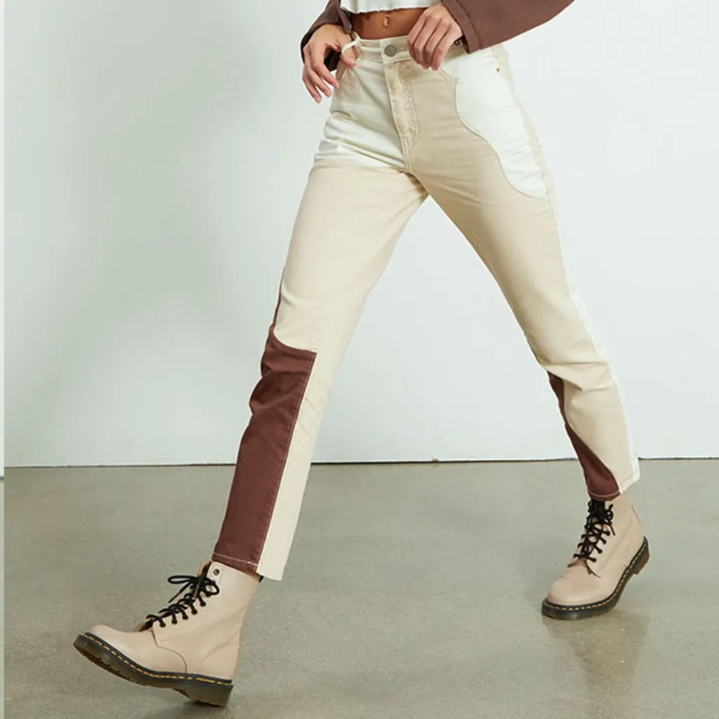 Pacsun color block wavy straight leg jeans cream tan and white color way mom jean fit Waist: 14” f... Show more