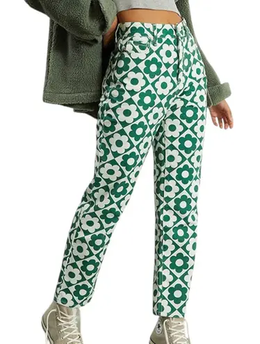 Trendy and fun PacSun Green & White Daisy Print High Waisted Straight Leg Jeans in women’s size 26.... Show more