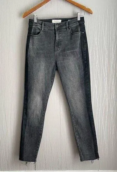PacSun High Rise Ankle Jegging Women’s 29 Stretch Black Gray Raw Hem Tuxedo Stripe Size 29 Across wa... Show more