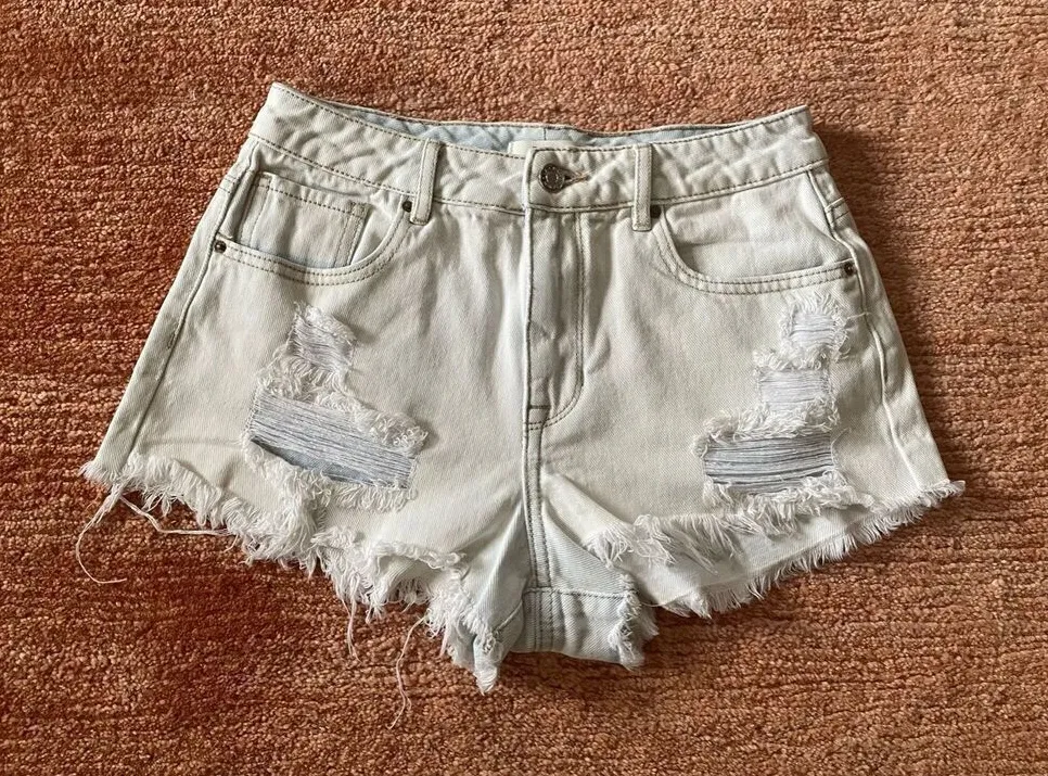 PacSun High Rise Festival Destroyed Pale Blue Women's Shorts Size 26 (S) Excellent condition