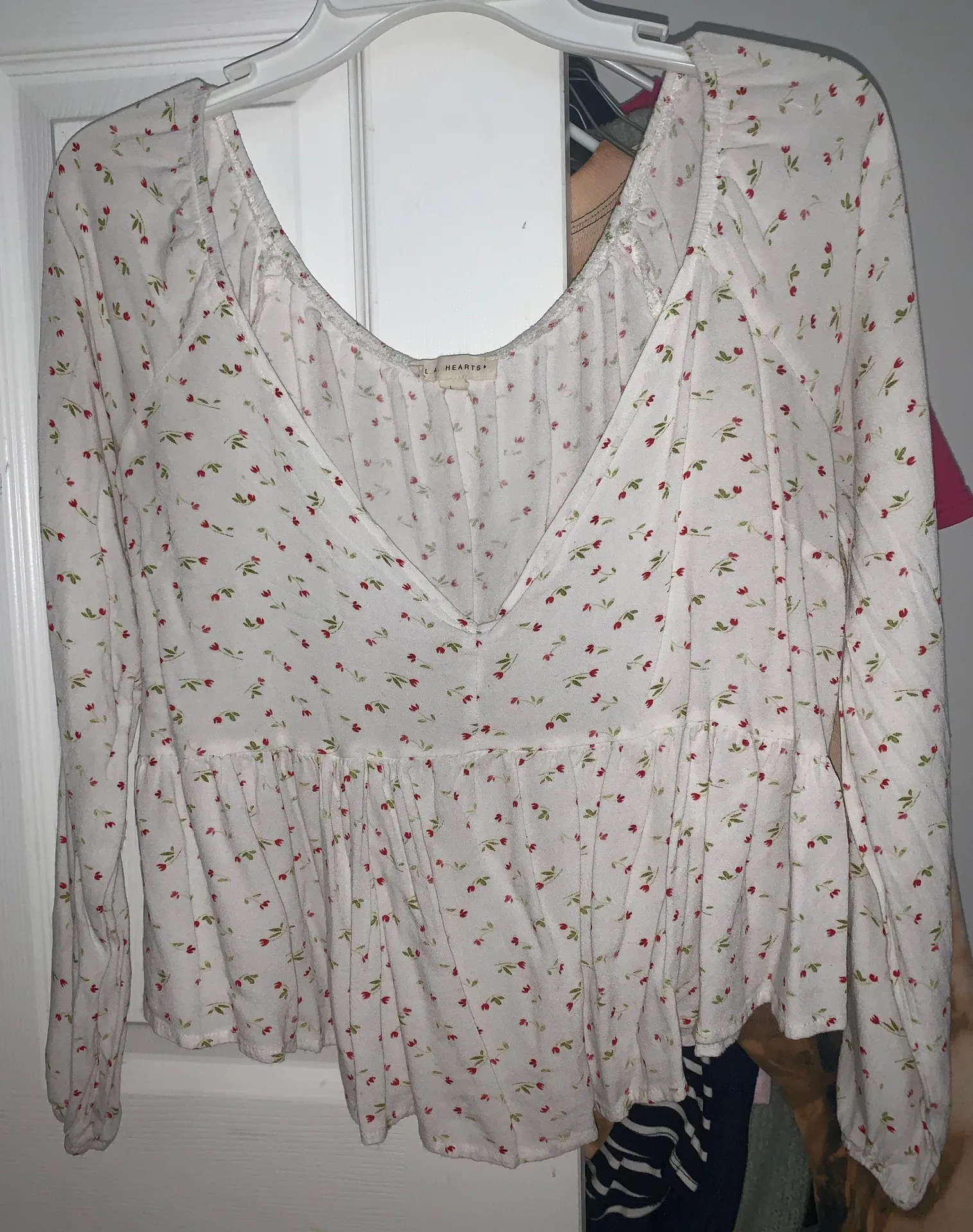 Pacsun LA Hearts white deep V-neck shirt with red flower design size large never worn no flaws size... Show more