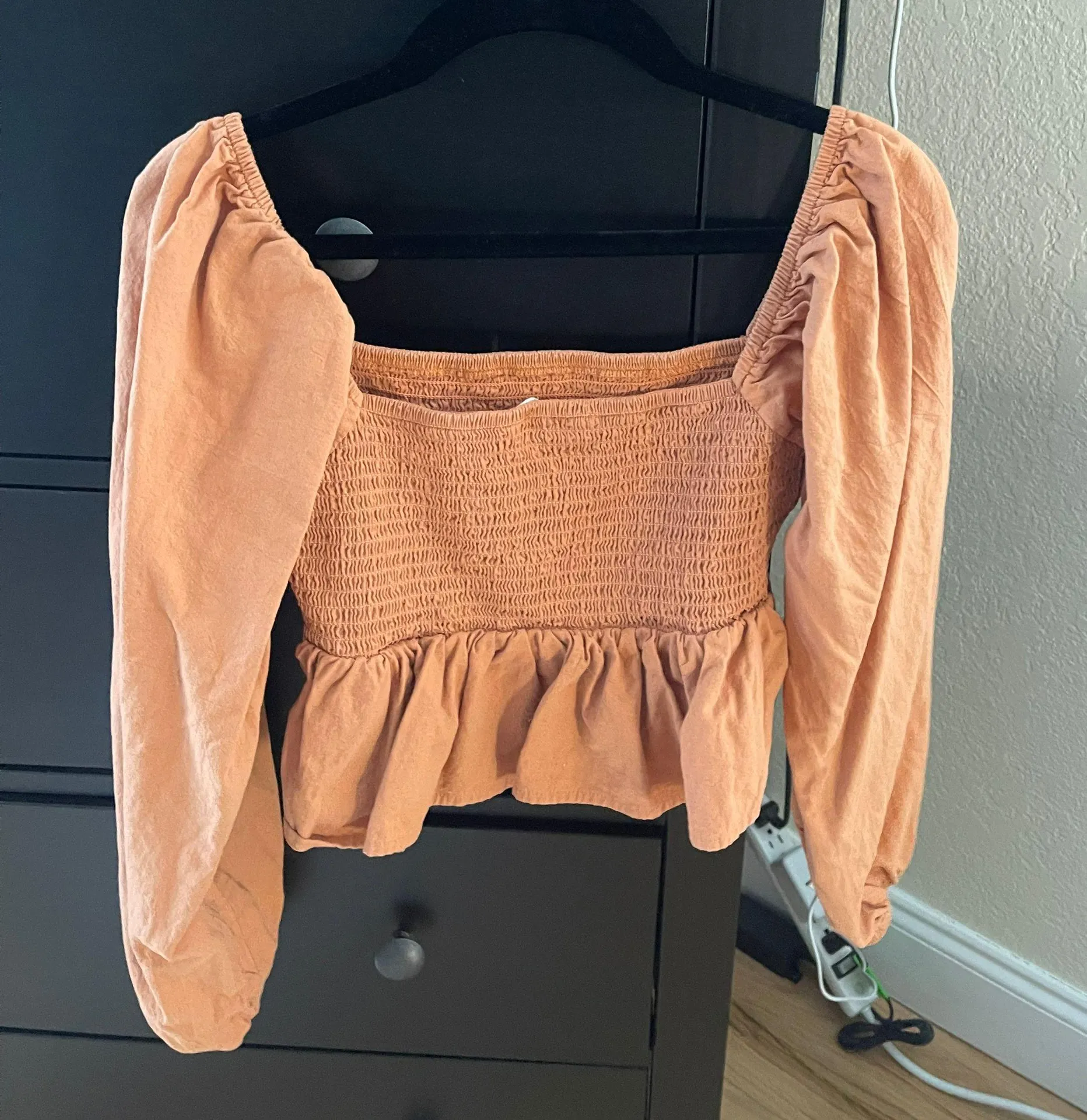 just needs a little wrinkle release. looks stunning on! the perfect burnt orange. somewhat cropped.