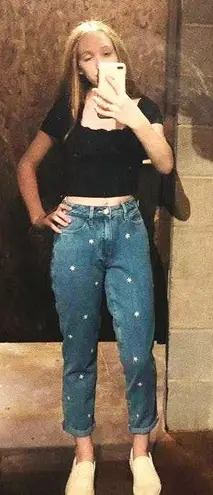 *SIZE 22* embroidered daisy mom jeans-partially cropped-perfect condition just too small for me now