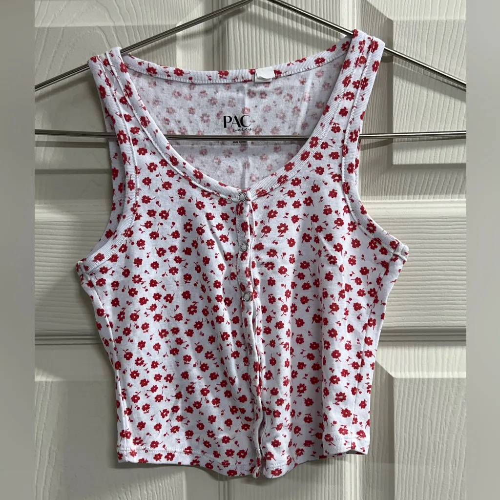 Pacsun Pac Cares White and Red Floral Crop Tank Top - Size XS - EUC - $8 - From Renee