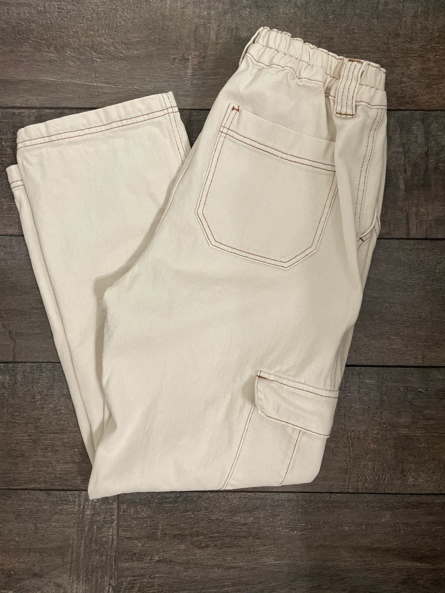 Cream pants and brown piping super cute, fits perfect for those who have trouble with jeans being to... Show more