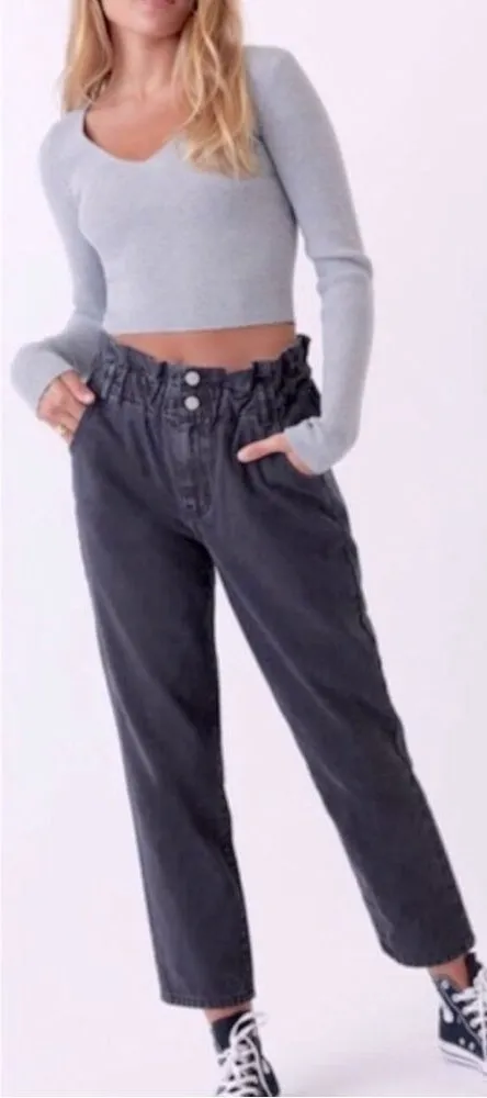 Pacsun Paperbag Straight Leg Mom jeans dark black wash size 23. Rigid denim. Good condition Tags:... Show more