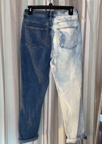 distressed pacsun mom jeans! two toned- half denim blue and half bleached blue! only worn once!