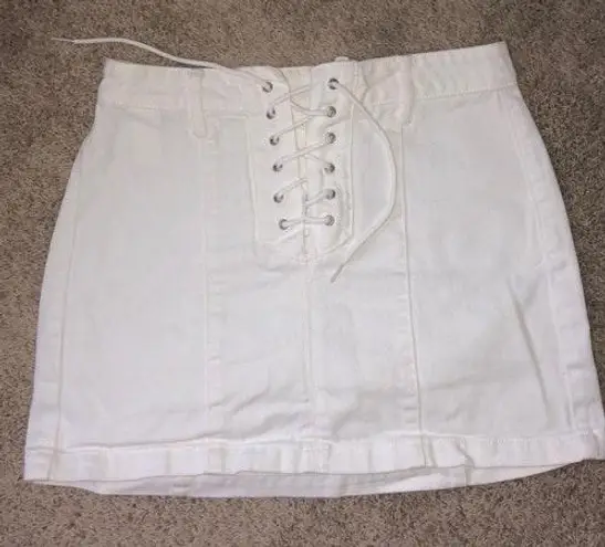 Adorable lace up skirt! Worn twice but too big on me. Very flattering skirt. Size runs bigger true 2... Show more
