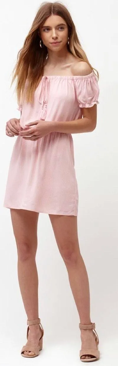 PacSun L.A. Hearts Off the Shoulder Dress Tassel accents Super Soft Pink Polka Dot Fabric Style 0... Show more