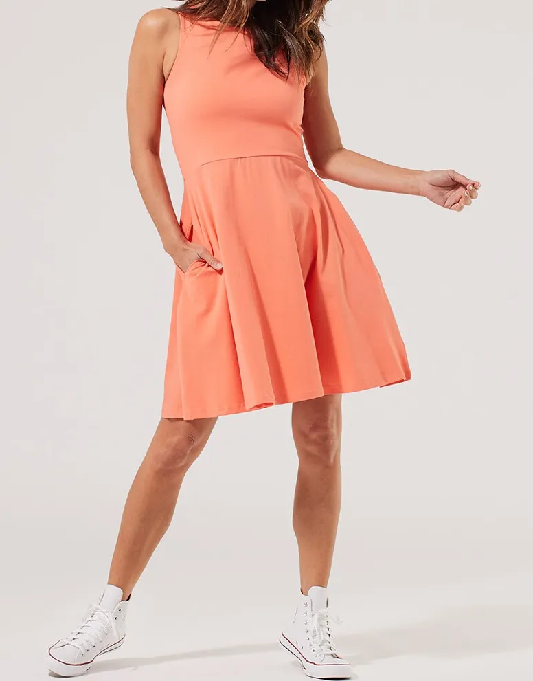 Brand : Pact Size : M Condition : Great . Minor signs of stress near the brand tag . Please see pictures . Style: Sleeveless Fit and Flare / A-Line Mini Dress Side slit pockets Back keyhole button closure Soft jersey fabric - 95% Organic Cotton / 5% Elastane Made in: India Measurements laying flat approx: CHEST : 17 in. Waist : 15 1/2 in. Length : 36 1/4 in. Smoke free , pet free environment I ship everyday.