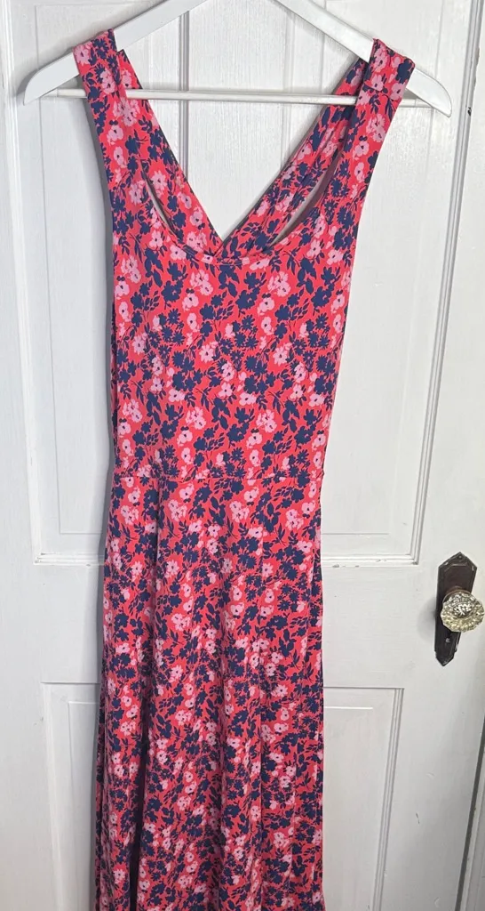 Ooh la la. The Fit & Flare Open Back Maxi is a classic, sun-kissed silhouette in our best-selling, holds-you-in fabric. Prepare for compliments! • Soft organic cotton with a touch of stretch • Internal shelf bra • Scoop neck, sleeveless • Hidden side pockets • Crossback straps with a soft scoop • Sweeping skirt, hits at the ankle on most New without Tag! Underarm to underarm approximately 15”. Top of shoulder to bottom hem approximately 56”. Across waist approximately 14”. Material is soft and stretchy. W1898