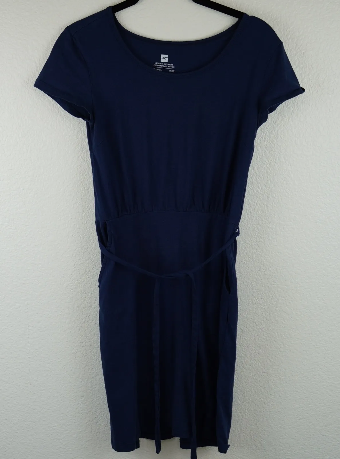 Measurements: • Shoulder to Hem Length: 36 in • Pit to Pit: 15 in Style: T-Shirt Dress, Shirt Dress Dress Length: Midi Department: Women Sleeve Length: Short Sleeve Pattern: Solid Occasion: Casual Material: 100% Cotton Fabric Type: Jersey Neckline: Round Neck Season: Summer, Spring Sleeve Type: Cap Sleeve Closure: Pullover Accents: Strap, Button Keywords: PACT, organic cotton, short sleeve, tie waist, navy blue, xsmall, casual, everyday, comfortable, jersey knit, pockets, midi dress, basic Offers welcome! Fast Shipping!