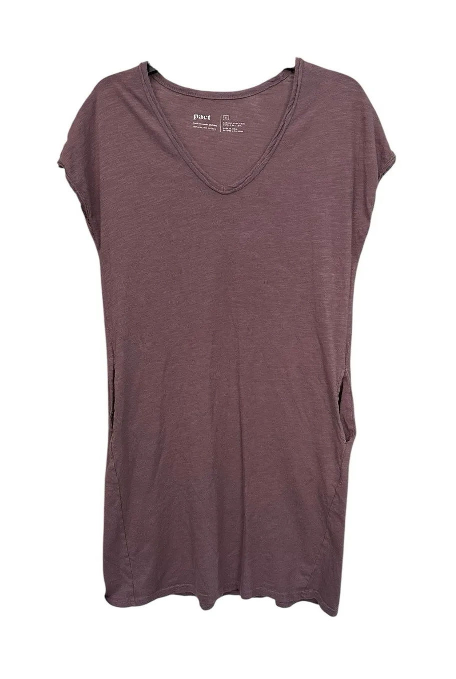 The Pact Organic Cotton T-shirt Dress in Pink, size Small, features a solid pattern with a round nec... Show more