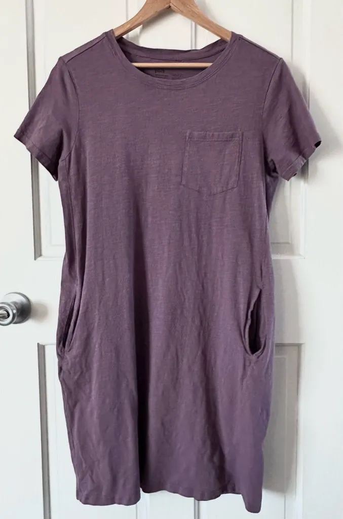 PACT Purple Short Sleeve T-shirt Dress with Pockets Organic Cotton Good preowned condition Size M A... Show more