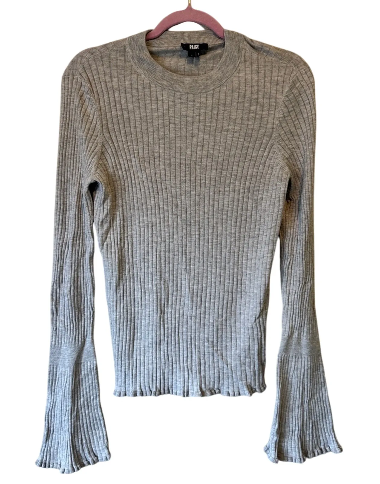 Paige Grey Ribbed Bell Sleeve Sweater Womens L Casual Classic Preppy Pullover Preowned in excellent... Show more