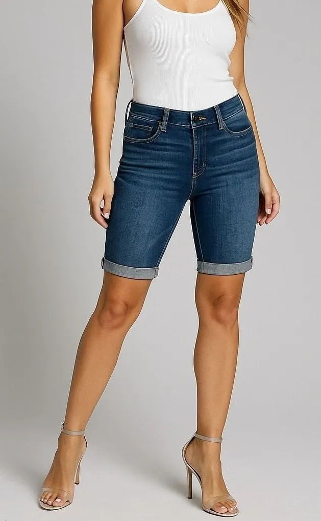 # Paige, Jax Knee Short, Denim Shorts, Bermuda Shorts, Cuffed Hem, Size 30, Blue Jeans Shorts, Casual Shorts, Comfortable Shorts, Cotton Blend, Summer Shorts, Knee Length Shorts, Womens Shorts