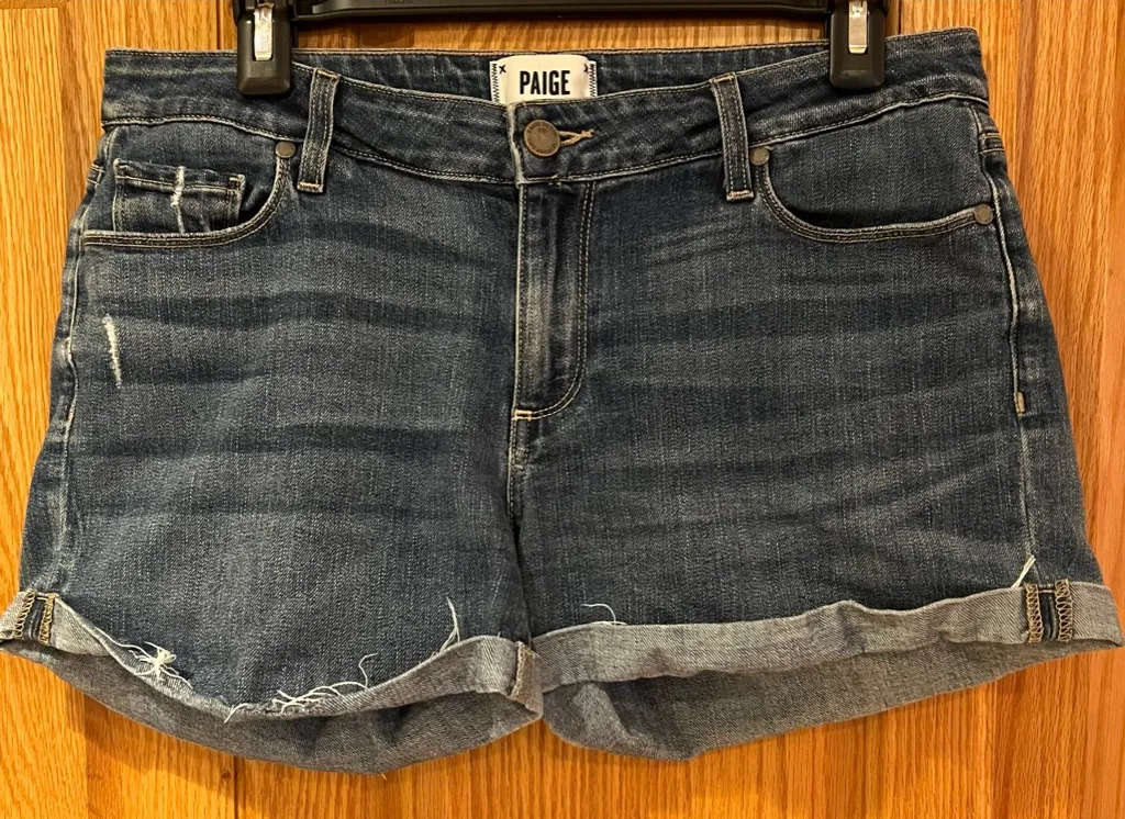 I’m selling Women’s Paige Jimmy Jimmy Short Distressed Cuffed Blue Denim Shorts Size 28 for $25. A... Show more