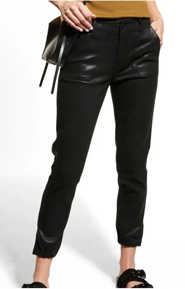 in great condition PAIGE Mayslie coated jogger denim pants in black metallic. These stylish pants... Show more