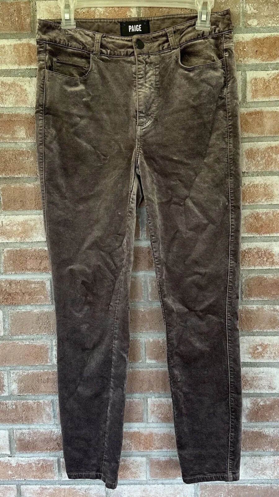 Women's size 28 Paige velvet skinny pants. Purple color, excellent condition! Approximate flat lay m... Show more
