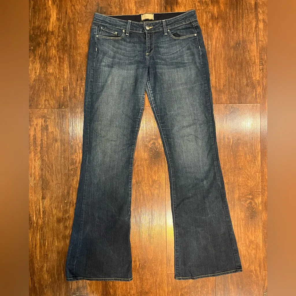 Stylish dark blue flare jeans. Perfect for a chic look. Comfortable and versatile. Low rise vintage... Show more